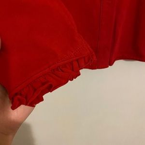 ▪️Description- long sleeve top/ button up/ ruffle detail on sleeve opening / studs and chain details // soft cotton material // a little stretchy // approximately 18.5 pit to pit