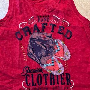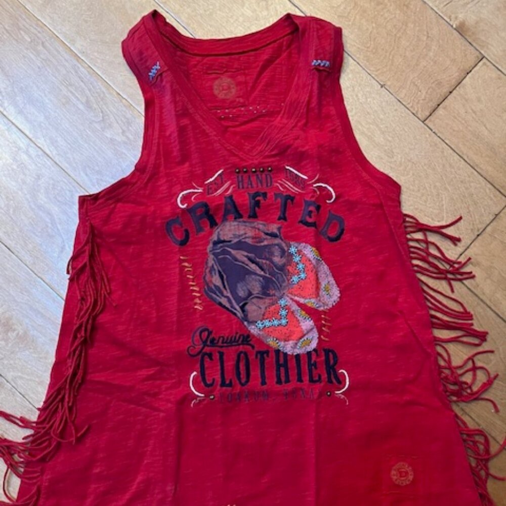 Red Double D Ranch Tank with fringe Size XS but will fit a small . red Beaded top great for a hot day #1001