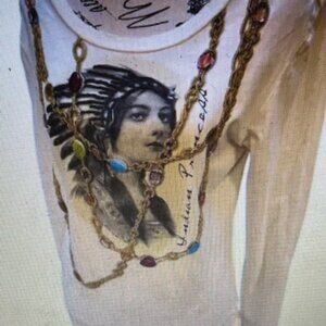 Stunning Beaded Double D ranch Long sleeve Size M Indian Princess. Cream color gold bead work and gem stone type adornments . # 1001