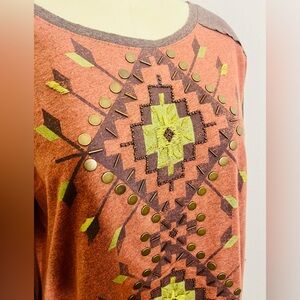 Double D Ranch Aztec Long Sleeve Western Cotton Top Size Small