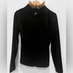 Double D Ranch Black Velvet Mock Turtleneck Feather Trim Small
