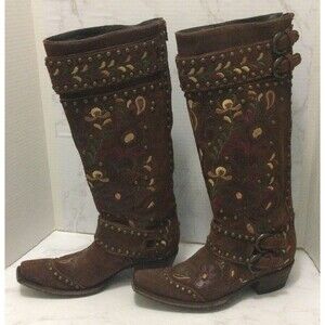Double D Ranch Boots 7 B Old Gringo Knee High Embroidered Brown Suede