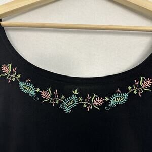 Double D Ranch Dress Womens 1X Black Embroidered Stretch Slinky Western Boho Vtg