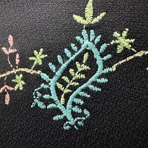 This vintage Double D Ranch dress in size 1X is a unique and stylish addition to any woman's wardrobe. The black embroidered design with a touch of western boho flair makes it perfect for a special occasion. Made from a stretchy and slinky acetate spandex material in the 1990s, this maxi dress exudes a timeless elegance with a hint of eveningwear allure. Crafted in the United States, this original piece is sure to stand out and make a statement wherever you go.