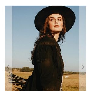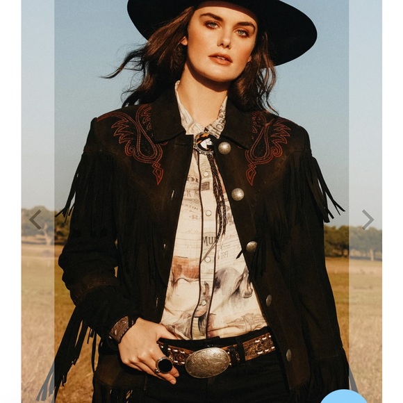 Black 1X, Brown XL. Beautiful, Goat Suede jacket with cowboy boot design detailing on the sleeves and jacket yoke. Fringe on sleeves and jacket. Stunning! I wear an XL. If you want to layer this jacket, get the 1X, if you’re a size XL. If you don’t want to layer, then stay true to your size. 1X measures 25 inches PTP