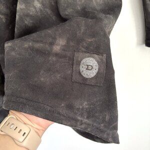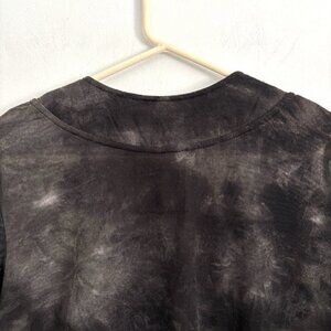 Double D Ranch Tunic, women’s size medium! Gray tie-dye pattern, long sleeves, studded along the neckline, high-low hem. Approximate measurements: 19” pit to pit, 31” length in the front and34” length in the back.