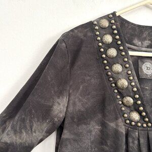 Double D Ranch Long Sleeve Gray Studded V-Neck Tunic Top Women’s Size Medium