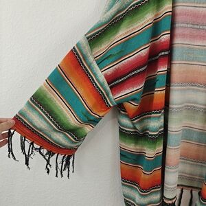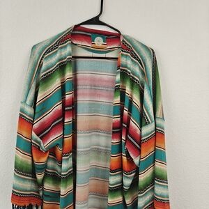 Double D Ranch Pachamama Serape Striped Western Open Front Kimono Jacket Large