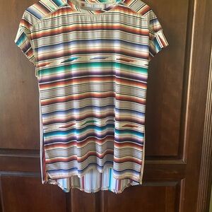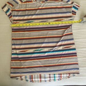Vibrant striped pattern. Features multiple colors. Stylish and unique design. Excellent condition.