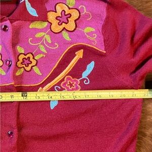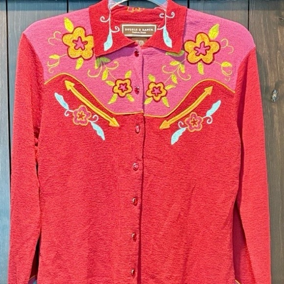 Double D Ranch western sweater top. Red and pink with beautiful embroidery. Button front. XL. Wonderful condition. Questions welcome. Measurements are in photos. Thanks for looking.