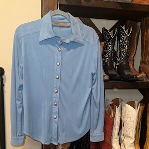 Stylish light blue button-up shirt with silver concho buttons. Perfect for casual or formal wear. Small but might fit small medium