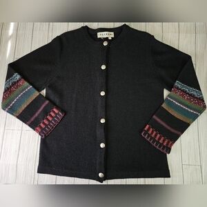 Double D Ranch Yoakum Beaded and Embroidered Cardigan in Black and Purple Sz Sm