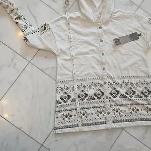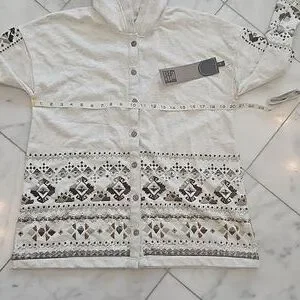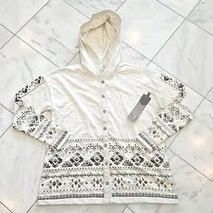 Double D Ranch cotton button-up jacket with hood. Color is concho ,beads & embroidery on the front and sleeves ,See photosofmeasurements.NWT