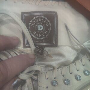 embellishments: fringe, hairpipe detailing, rhinestone studding