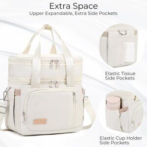 Double Deck Lunch Bag: Our lunch bag size: 9.3H''*10.4L''*8'.2''W, expanded size: 11.4H''*10.4L''*8.2''W. Double Deck Lunch Bag is designed with a wet/dry folding design, which is more in line with the needs of healthy food snacks storage and prevents food from piling up and squeezing. Large capacity design can meet all your needs during the whole day work trip, such as lunch box, beer, snacks, drinks, sandwiches, fruits, etc