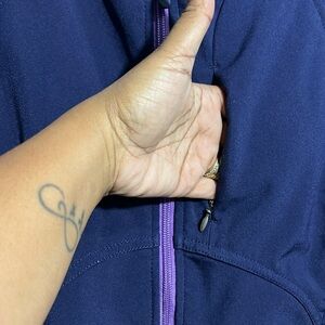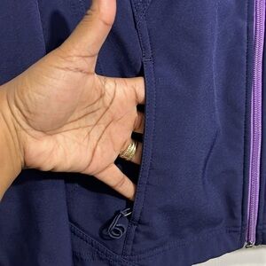 Double Diamond Women's Blue Jacket with purple zipper - Size Small. PTP: 19”. Front zip pockets. Preloved