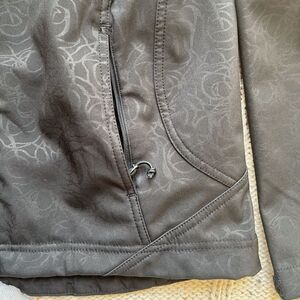 Double Diamond soft shell zip up black jacket with subtle pattern. Size M.