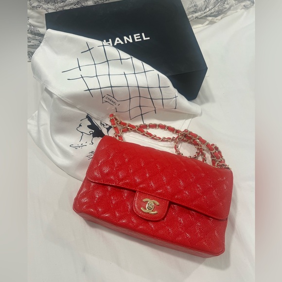 Chanel caviar leather bought second hand but it’s like new, dust-bag and box included gold hardware. Priced accordingly as it does not have any paperwork