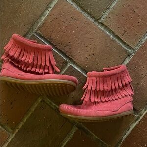Step out in style with these chic fringed moccasin boots. Perfect for adding a pop of color to any outfit.