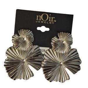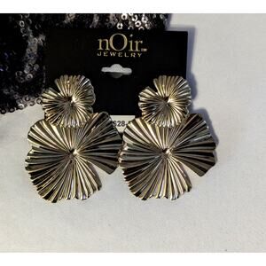Add a touch of elegance to any outfit with these stunning nOir double gold toned flower petal earrings! These earrings feature a beautiful double flower petal design with a pretty bevelled detailing.