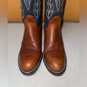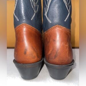 Double H Brown and Blue Cowboy Boots with Decorative Stitching EUC