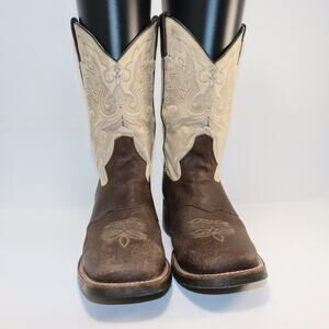 Double H DH3613 Western Cowboy Boots Brown & Tan Leather 8.5D Made in Mexico