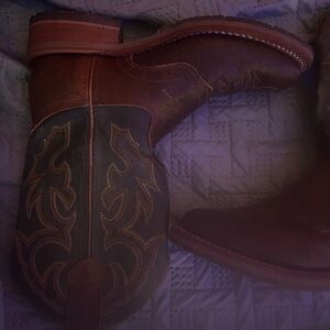 Stylish brand new brown cowboy boots with intricate stitching. Perfect for a Western look. Size 8
