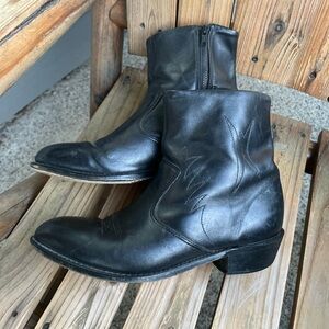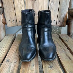 Double H Western Ankle Boot Side Zipper Black Leather Mens 10.5 EE
