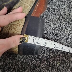Vintage size 9D Double H tan elephant print and chocolate brown wingtip cowboy boots.