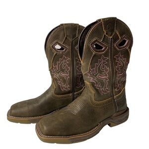 Double H Work Western Women’s phantom rider Boots Brown Leather Size 6 M. Pre owned condition