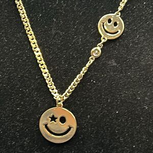 Double Happy Face Gold Tone Necklace, 18”