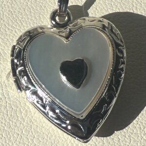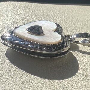 Double Heart Locket Mother-of-Pearl Sterling Silver New in Box