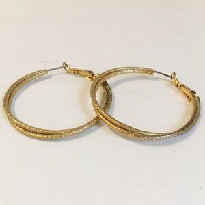 Double Hoop Earrings Gold Textured Twisted Rings Pierced Hinged Back Statement