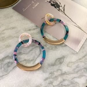 Brand new with tags Double Hoop Gold Bar Acrylic Tortoise Earrings