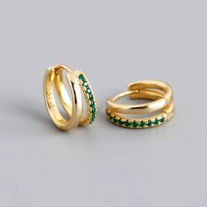 Double Huggie Earrings Green CZ CUTE everyday Jewelry huggies double hoop Green