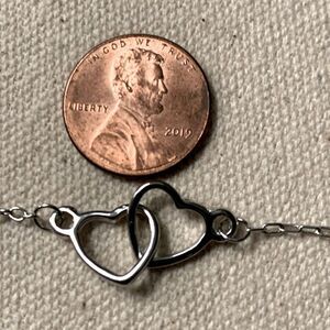Double Interlocking Silver Hearts Layering Love Friendship Necklace + Gift Pouch