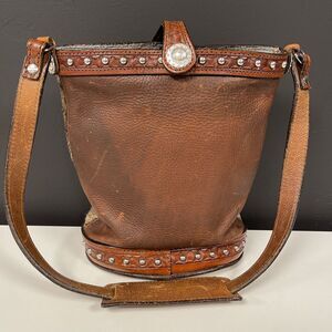 Double J Saddlery Tooled Leather Hide Bucket Handbag Tote Star Yoakum Texas