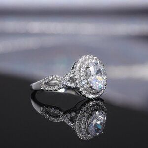 💥Double Layer Crystal Oval Wedding Luxury Rings for Women/Girl, K900