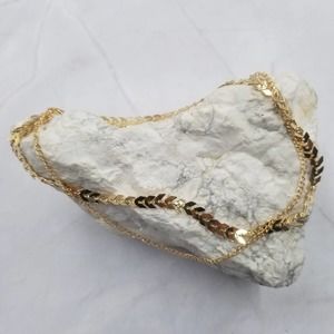 Double Layer Necklace Fish Bone and Chain Goldtone