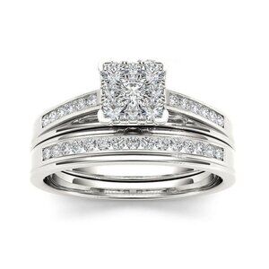 Double Layer Princess Cut Gems Square Zircon Rings for Women, EVGG1256
