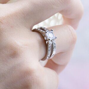 Double Layer Princess Cut Gems Square Zircon Rings for Women, EVGG1256