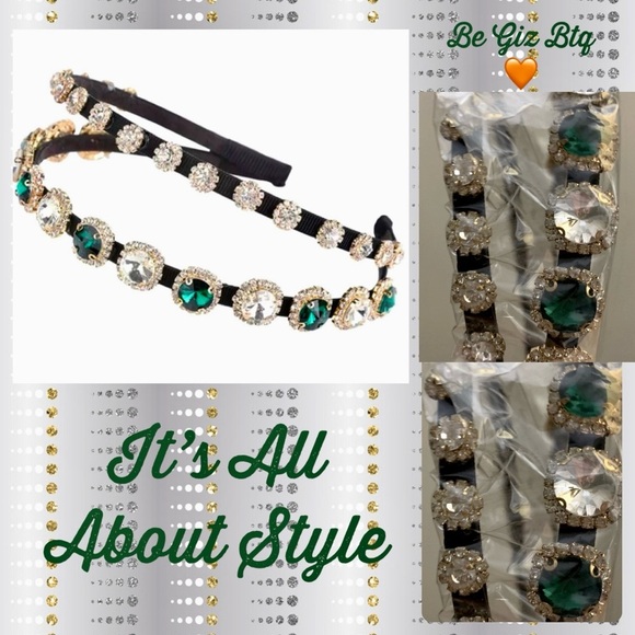 Double Layer Rhinestones Clear & Green 💚 Stunning Headband 🤍💚🤍