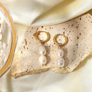 Double Natural Freshwater Pearl Drop Dangle Earrings Bohemian 18K Gold Plated Gift for Her