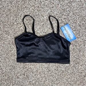Double Platinum 2 piece Black Dance set Satin crop Top and Briefs Adult S NWT