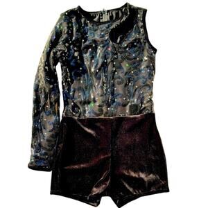 Double Platinum Sequin Unitard dance costume black sequin sparkle CXL
