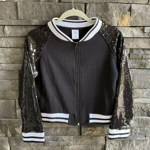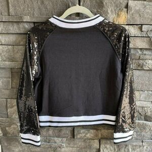 Double Platinum Girls Sequin Varsity Jacket Black Child XL. See size chart for measurements - in pictures.