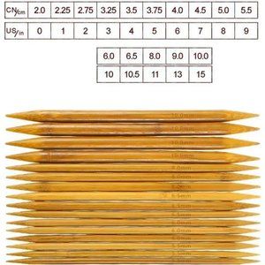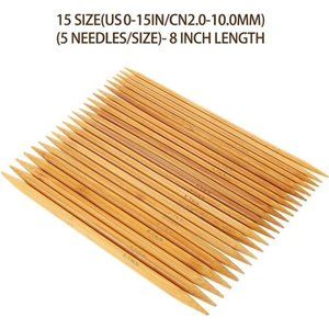 Double Pointed , 75 Pcs Bamboo Knitting Needles Set, 15 Sizes from 2.0mm-10.0mm