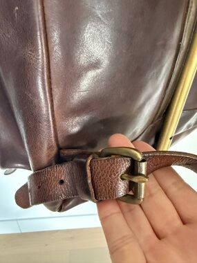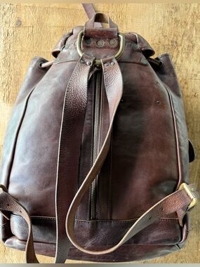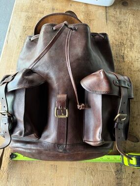 This is one of the original rucksacks made of high quality, thick, rich dark brown leather by Ralph Lauren Double RL. Leather tags were used before the more recent fabric tags they use now.