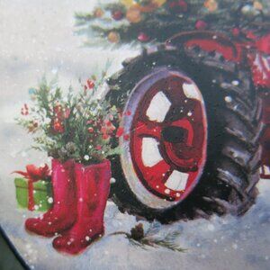 Double Sided Metal Winter Tractor Tree Dog Christmas Round Hanging Decoration