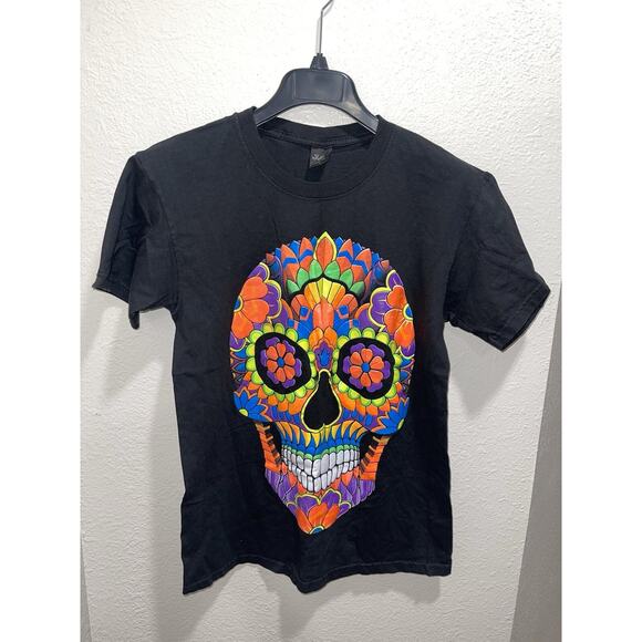 Celebrate the Day of the Dead with this stylish unisex T-shirt featuring a skull graphic. Made from high-quality materials, this T-shirt is perfect for regular wear. The black color and medium size make it a versatile addition to any wardrobe.The double-sided feature of this T-shirt ensures that you can enjoy the skull graphic on both sides. Whether you're attending a Day of the Dead celebration or just want to show off your unique style, this T-shirt is perfect for you. Order now and add it to your collection!